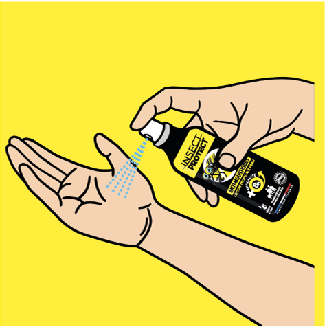 Appliquer l’anti-moustiques sur les zones du visage et du corps exposées aux piqûres.